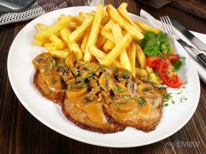 von Landschwein mit Champignonrahm und Fritten A,F,L,H,